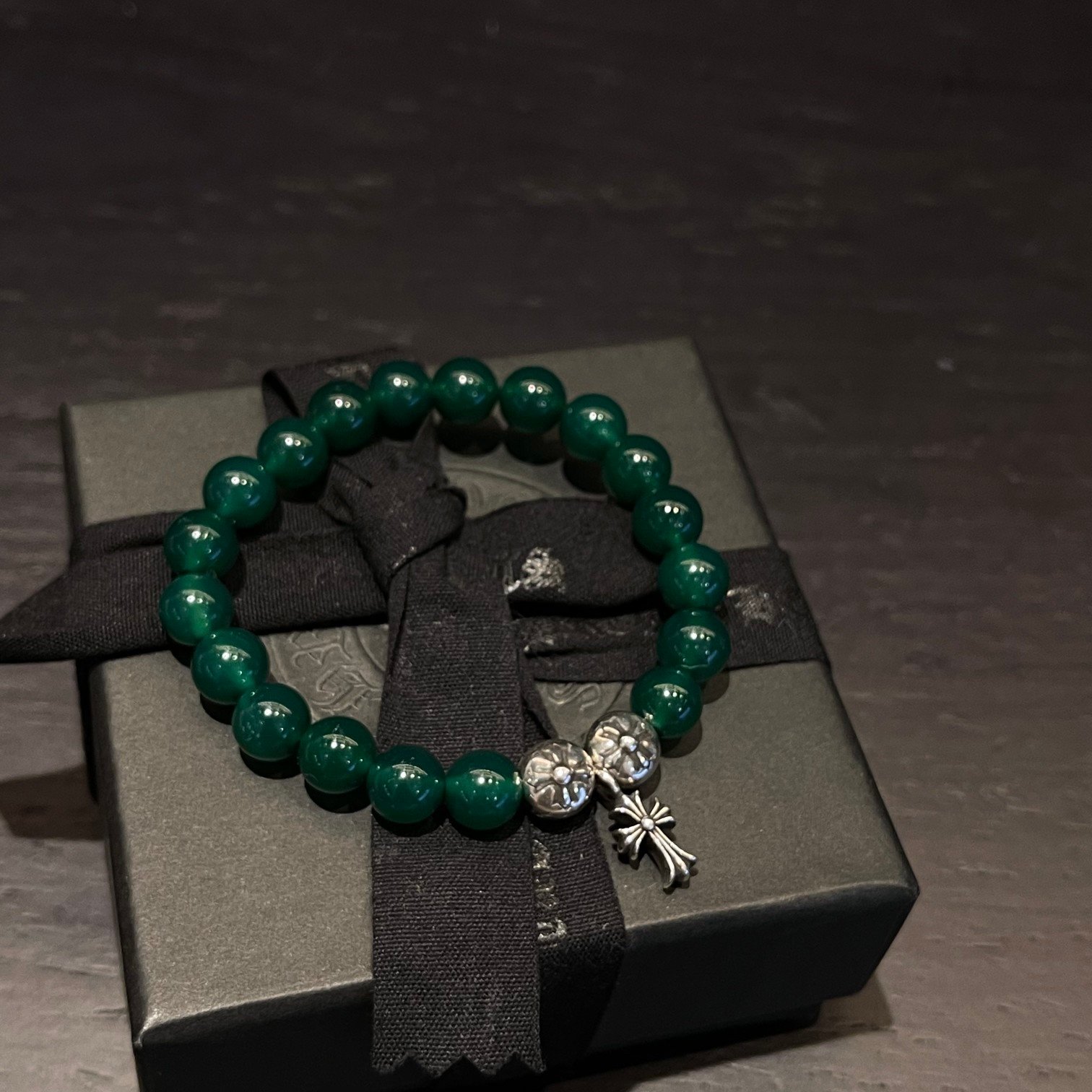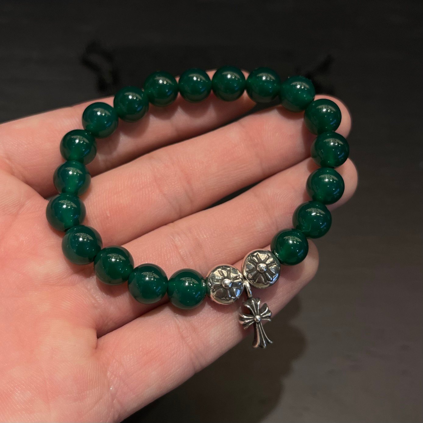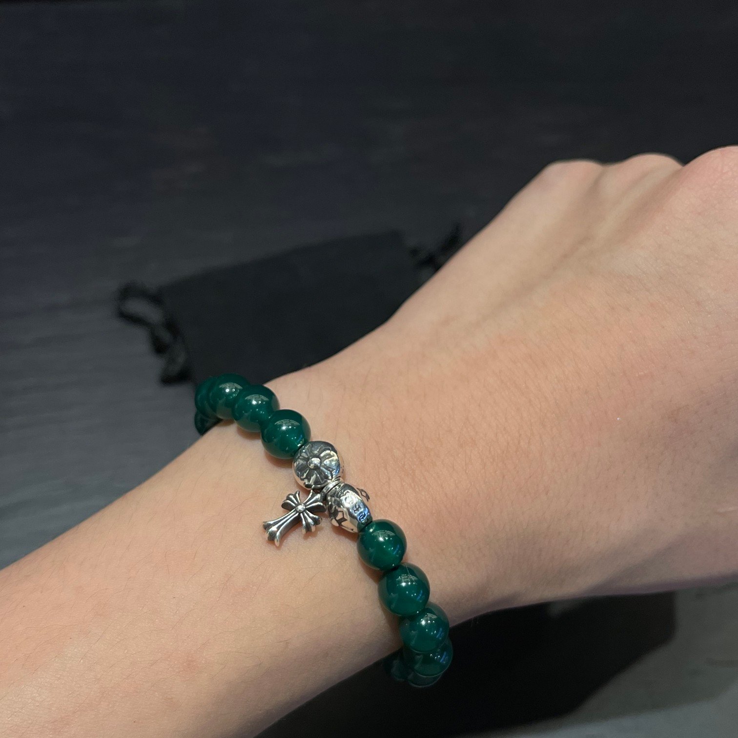 クロムハーツ グリーンメノウ 銀ビーズ ビーズブレス
