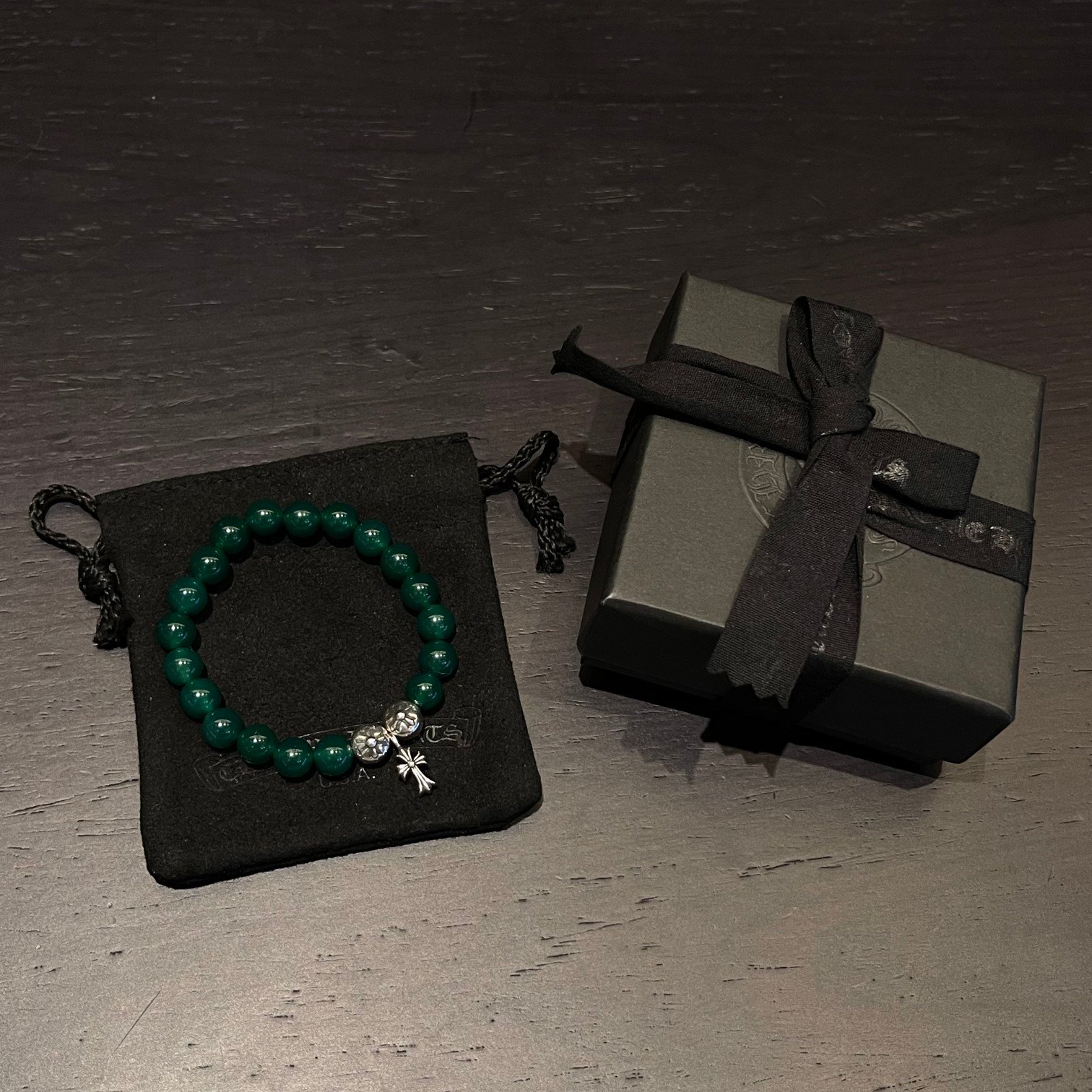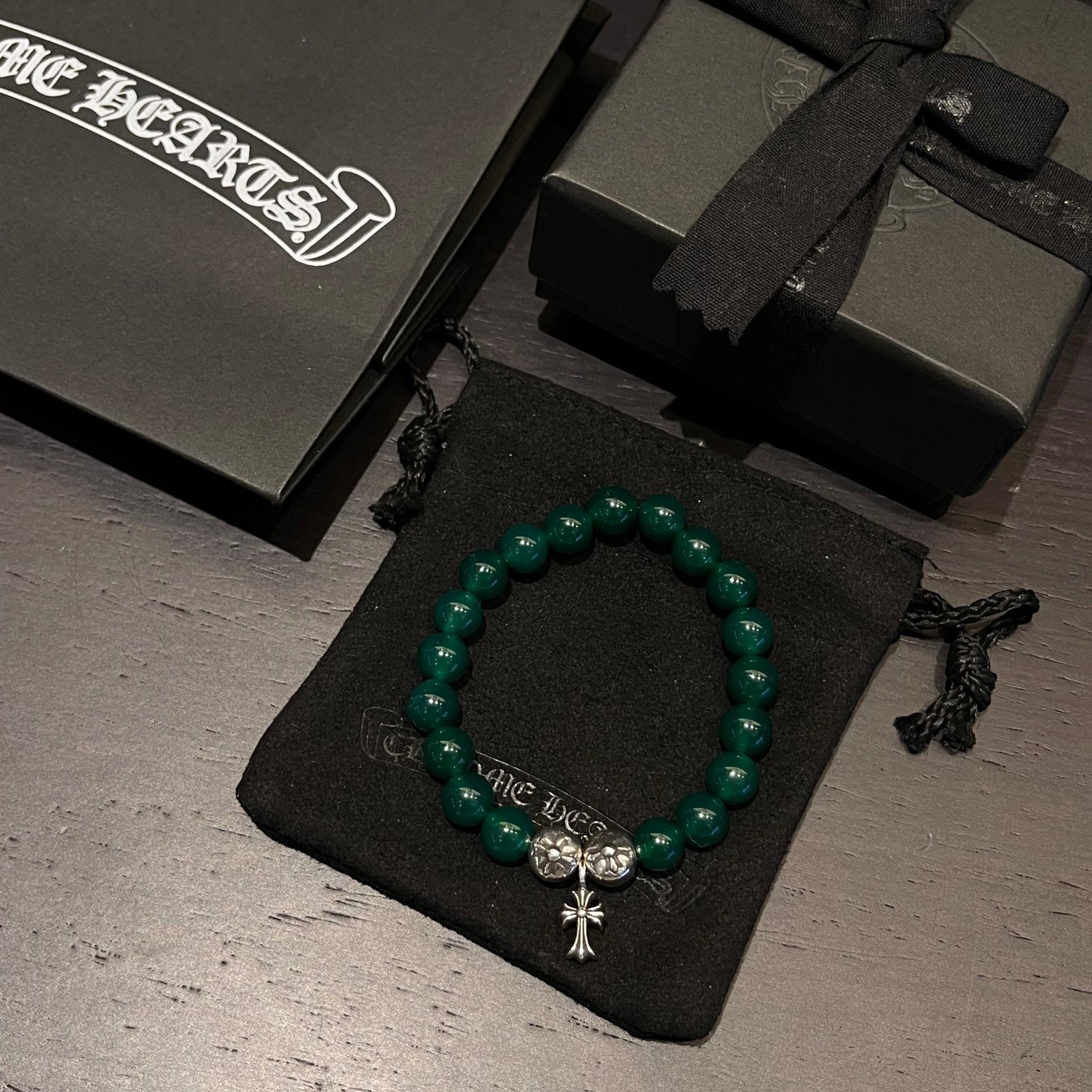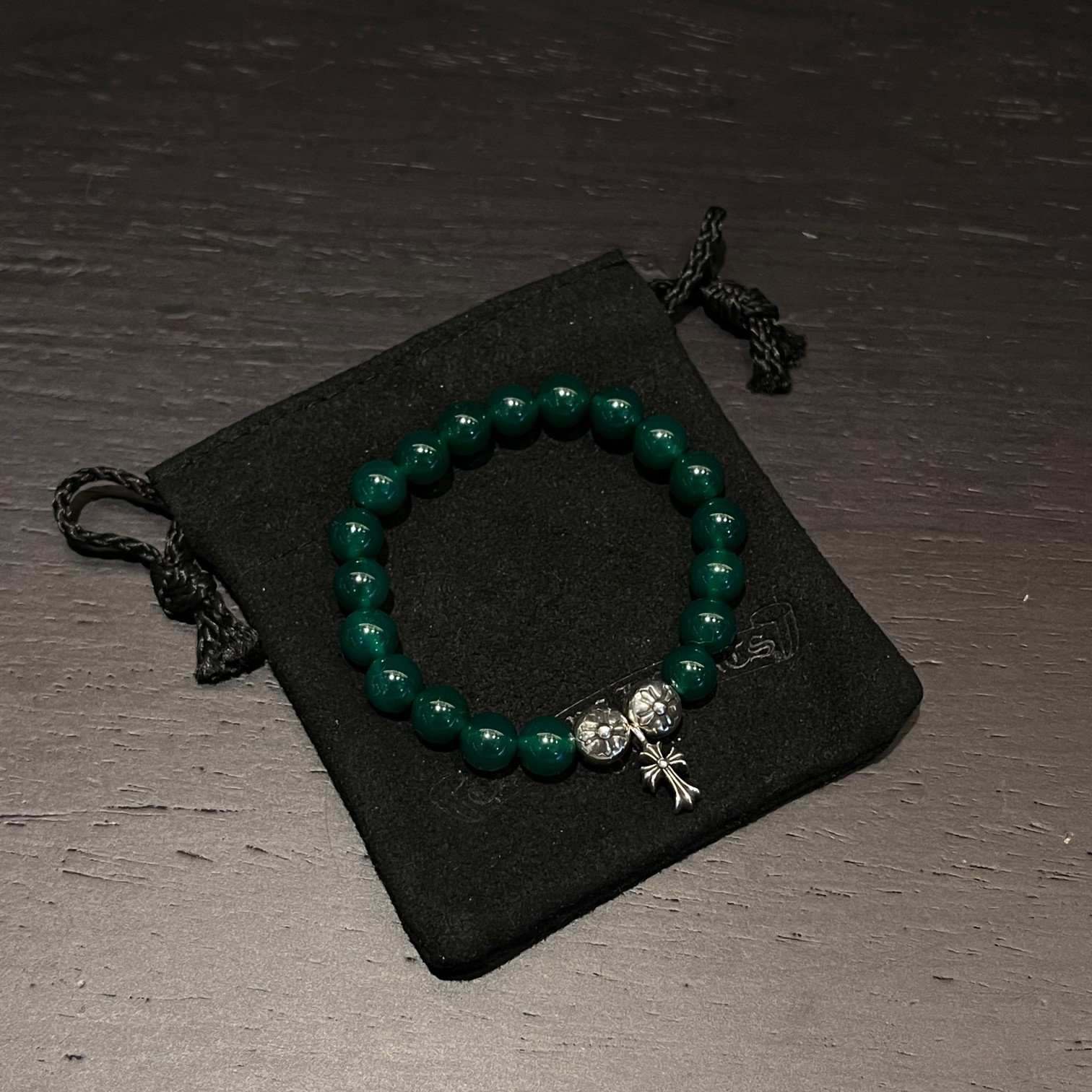 クロムハーツ グリーンメノウ 銀ビーズ ビーズブレス