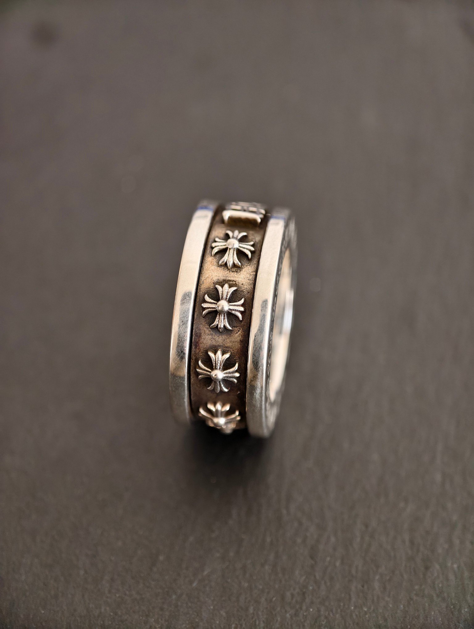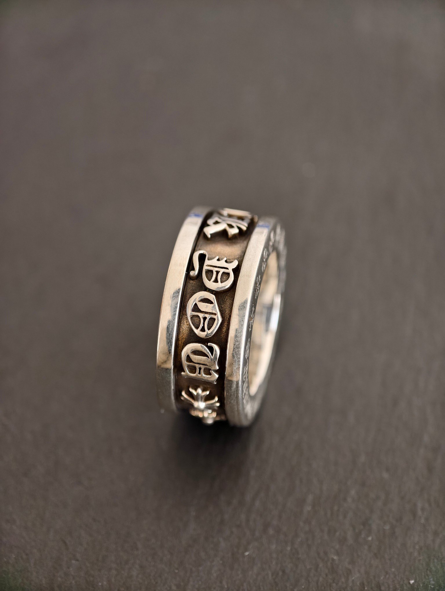 クロムハーツ ファックユー スピナーリング 925 シルバー製 ヴィンテージオキシデーション仕上げ ハンドエングレービング