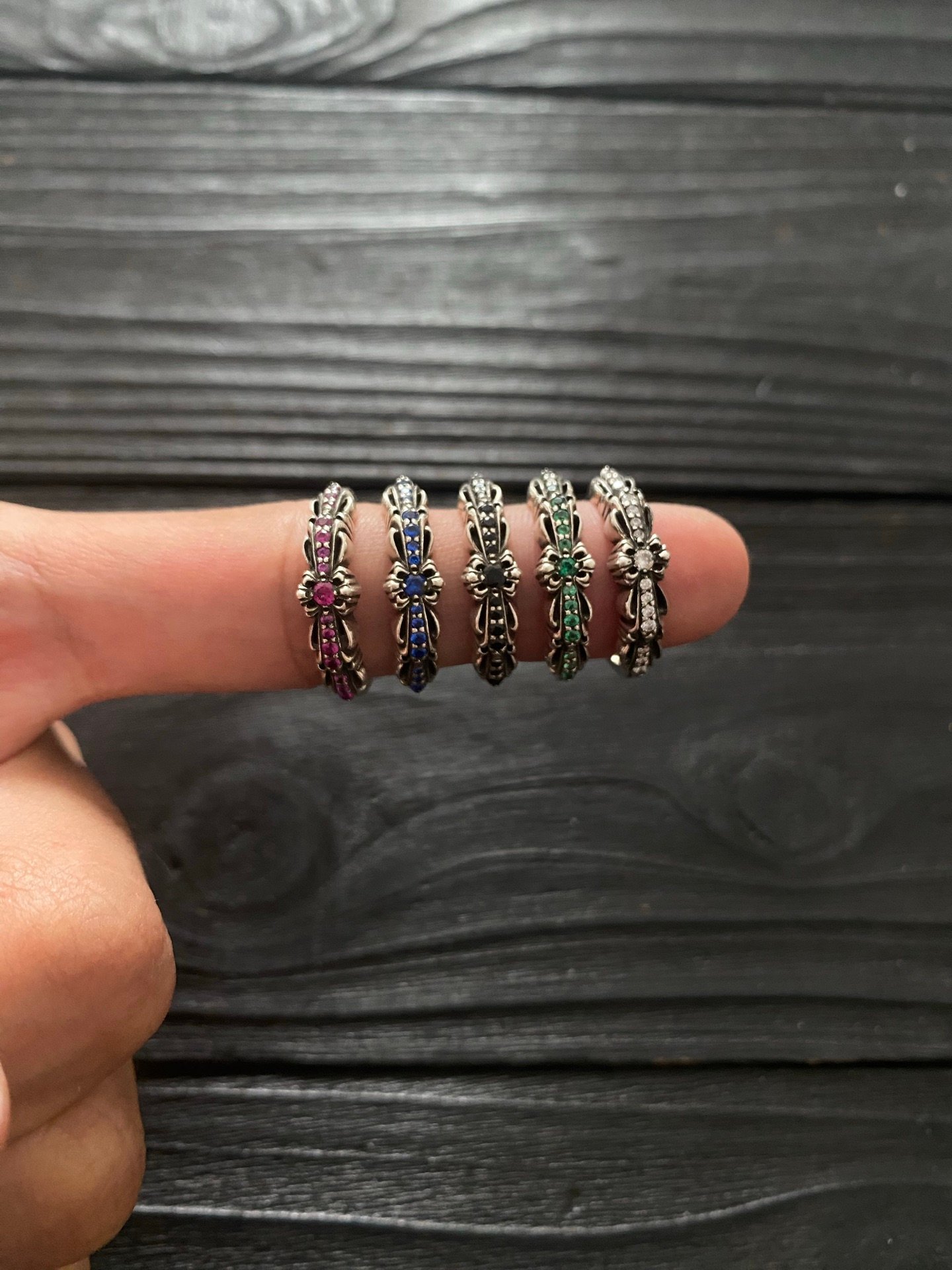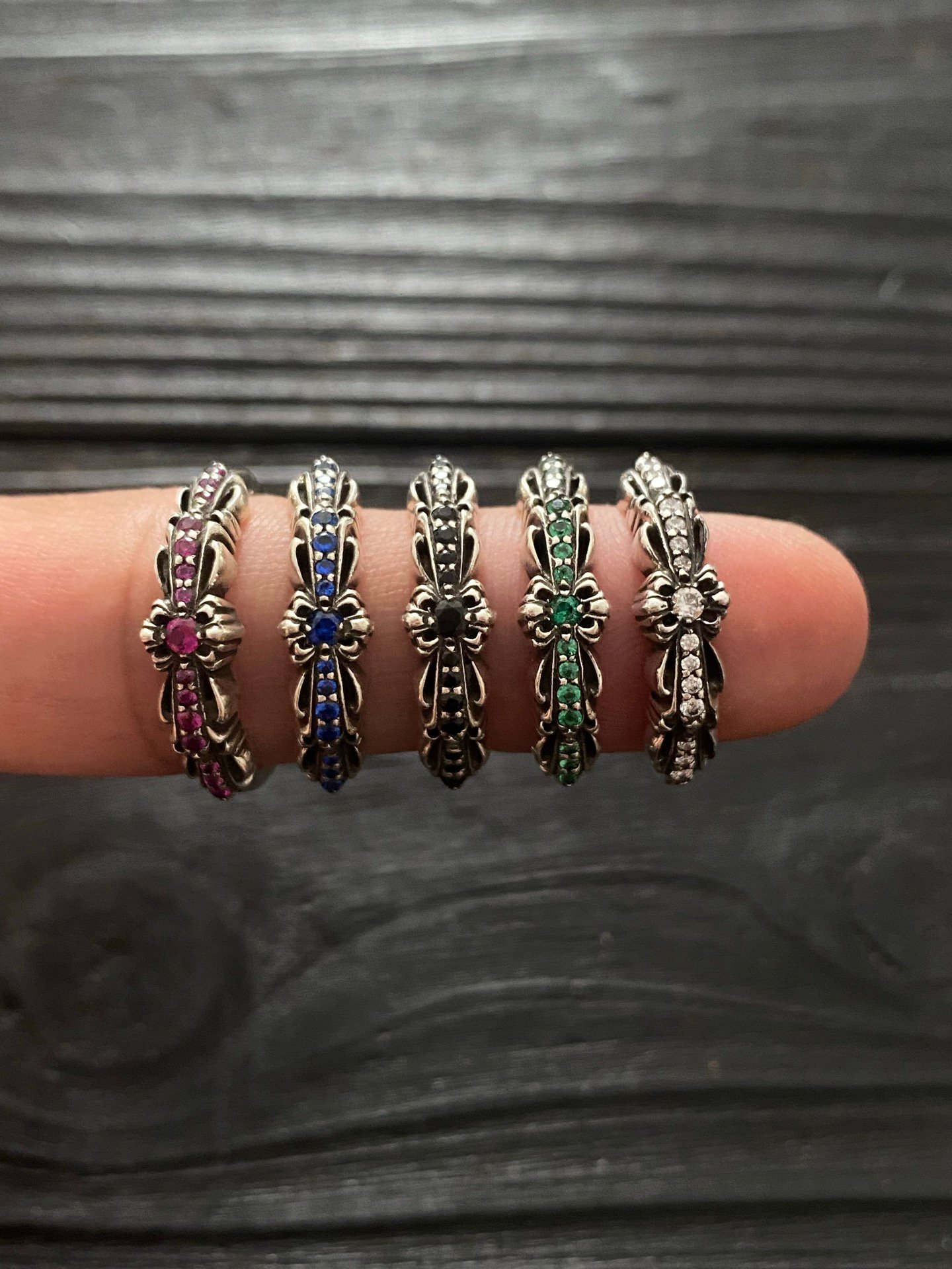 クロムハーツ マルチカラーダイヤ ナロー オープン クロスフラワー リング