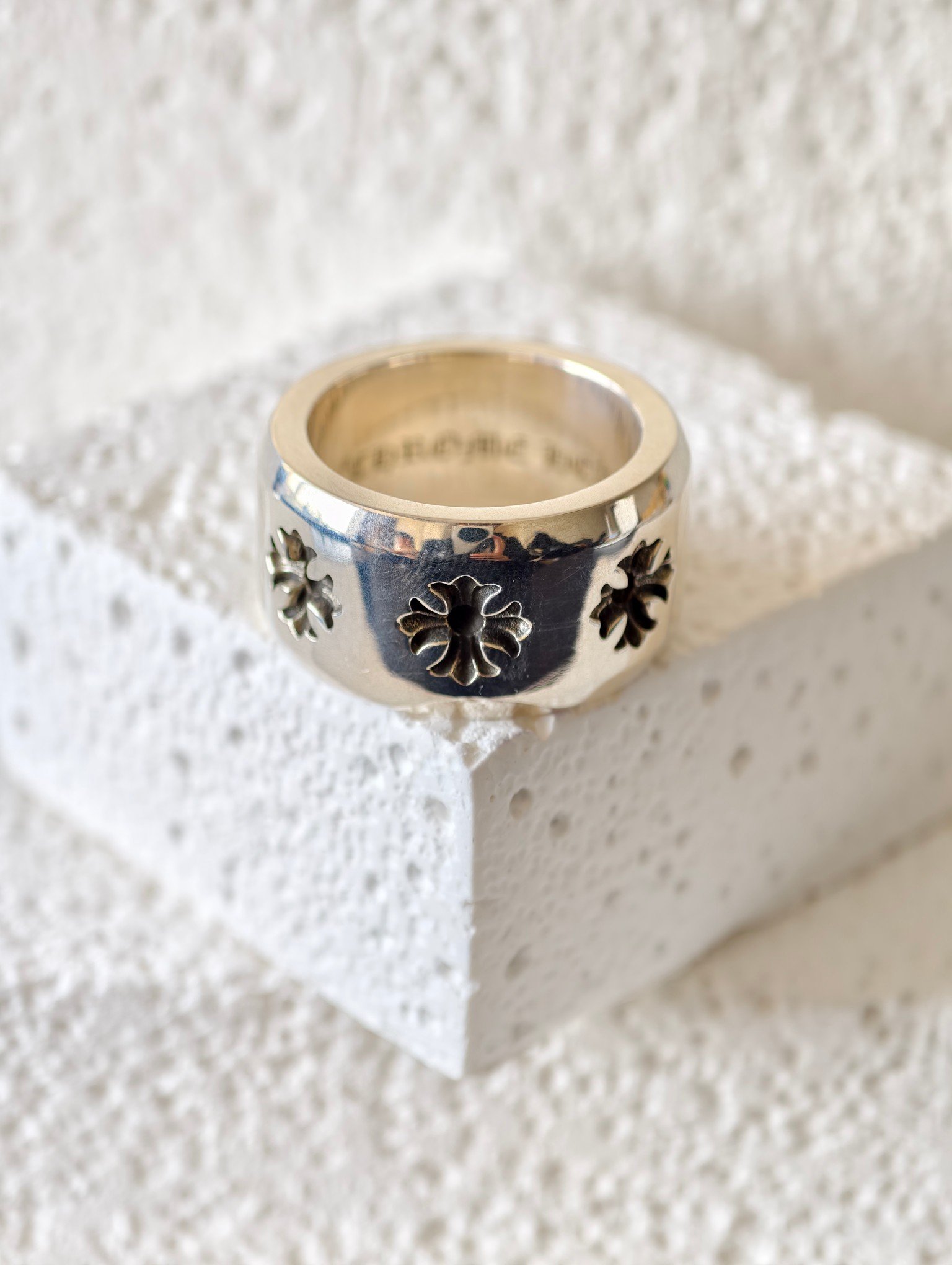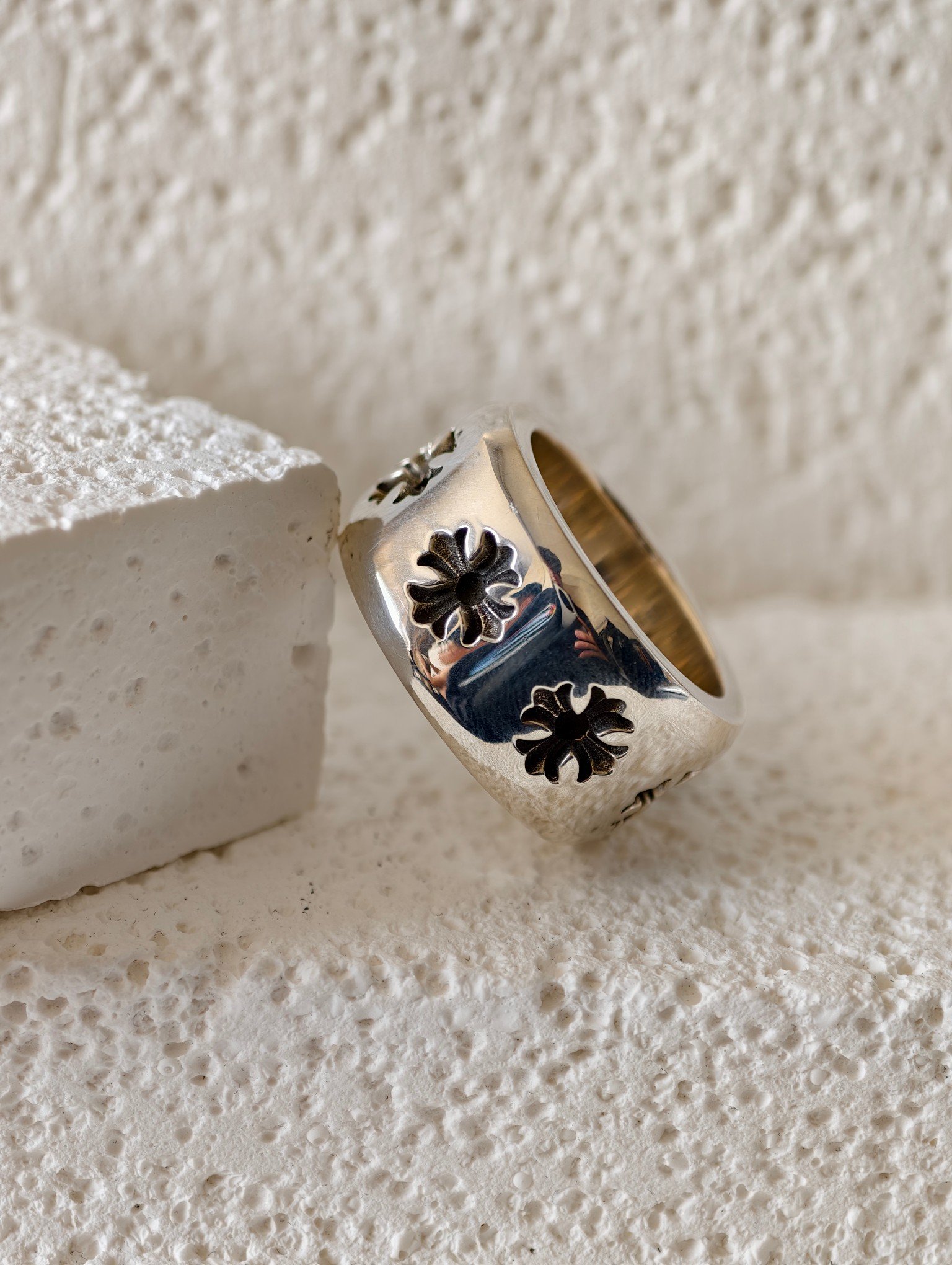 クロムハーツ ワイド ディープカット クロスフラワー リング