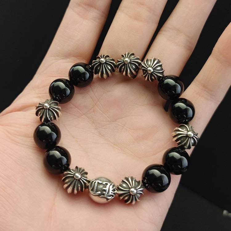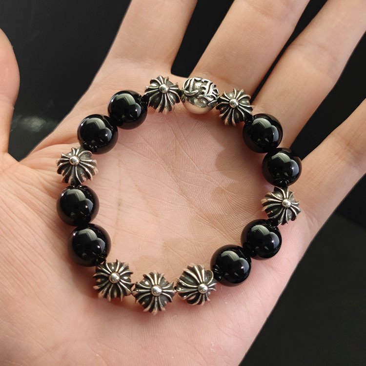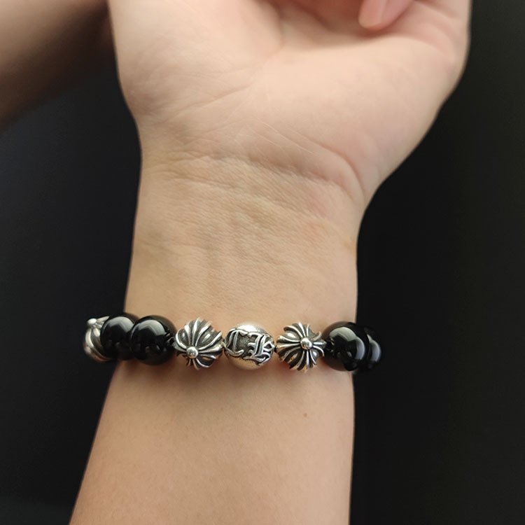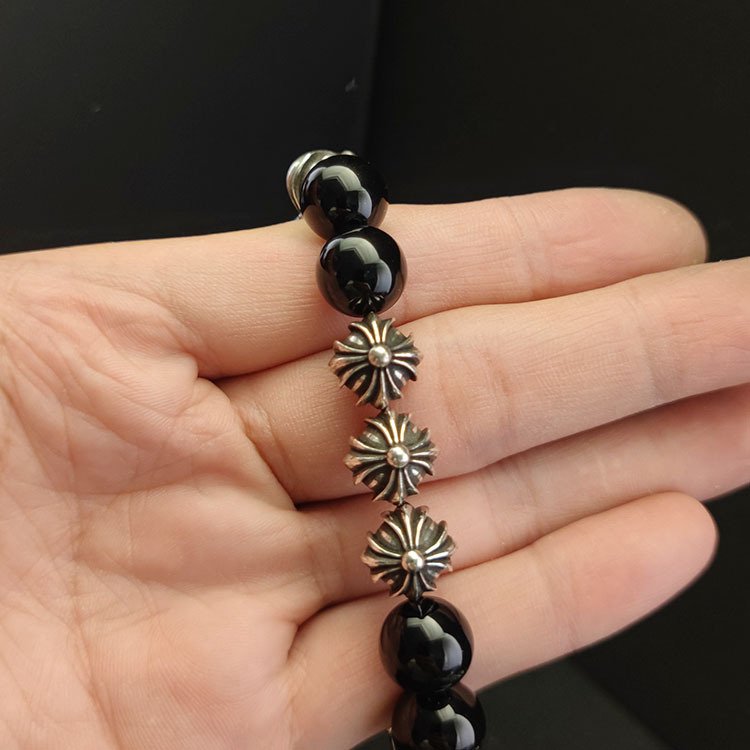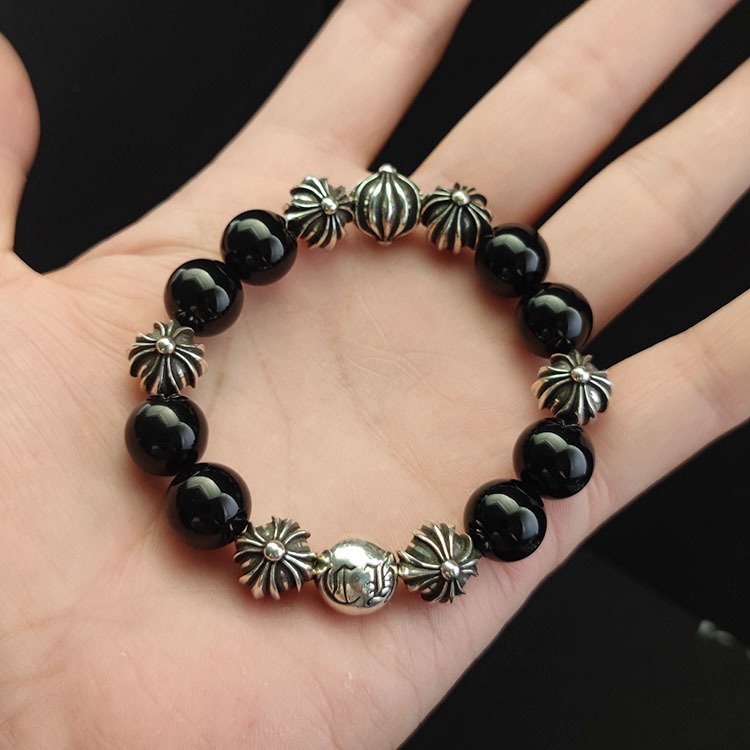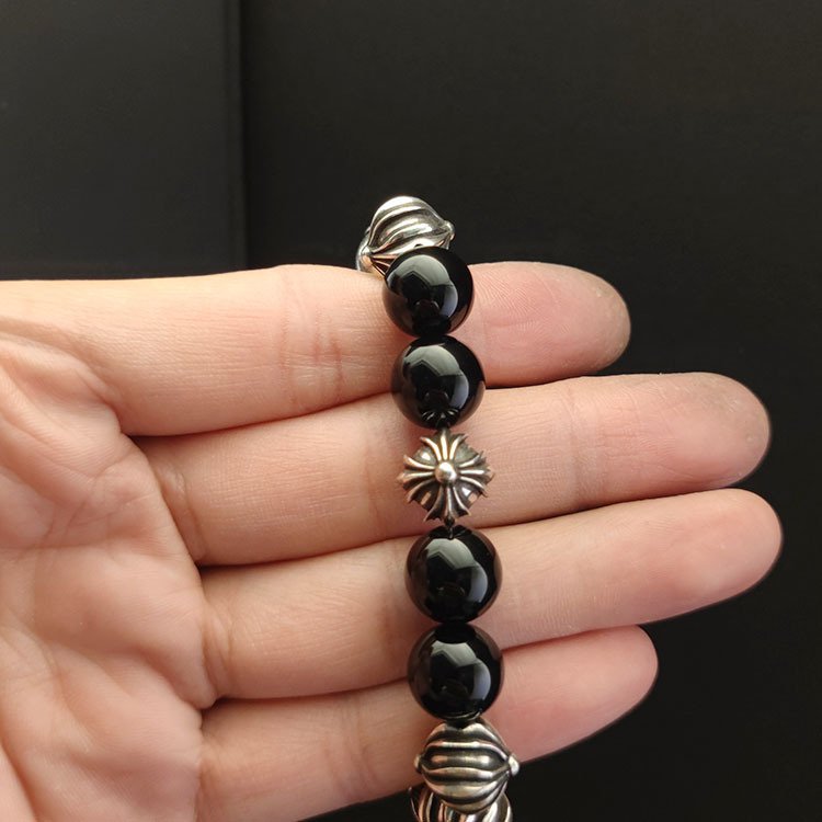クロムハーツ 18mm オブシディアン 8 個銀ビーズ ビーズブレスレット