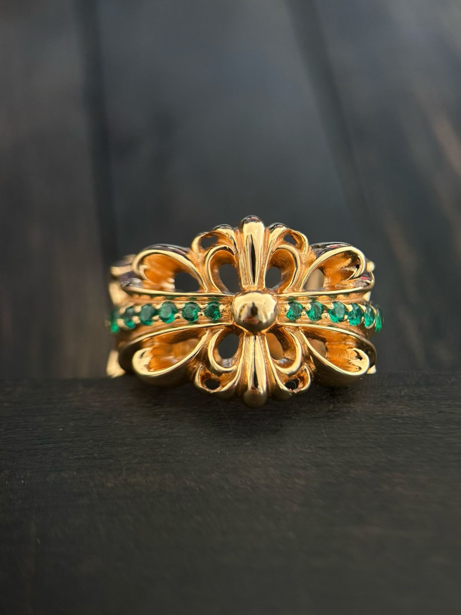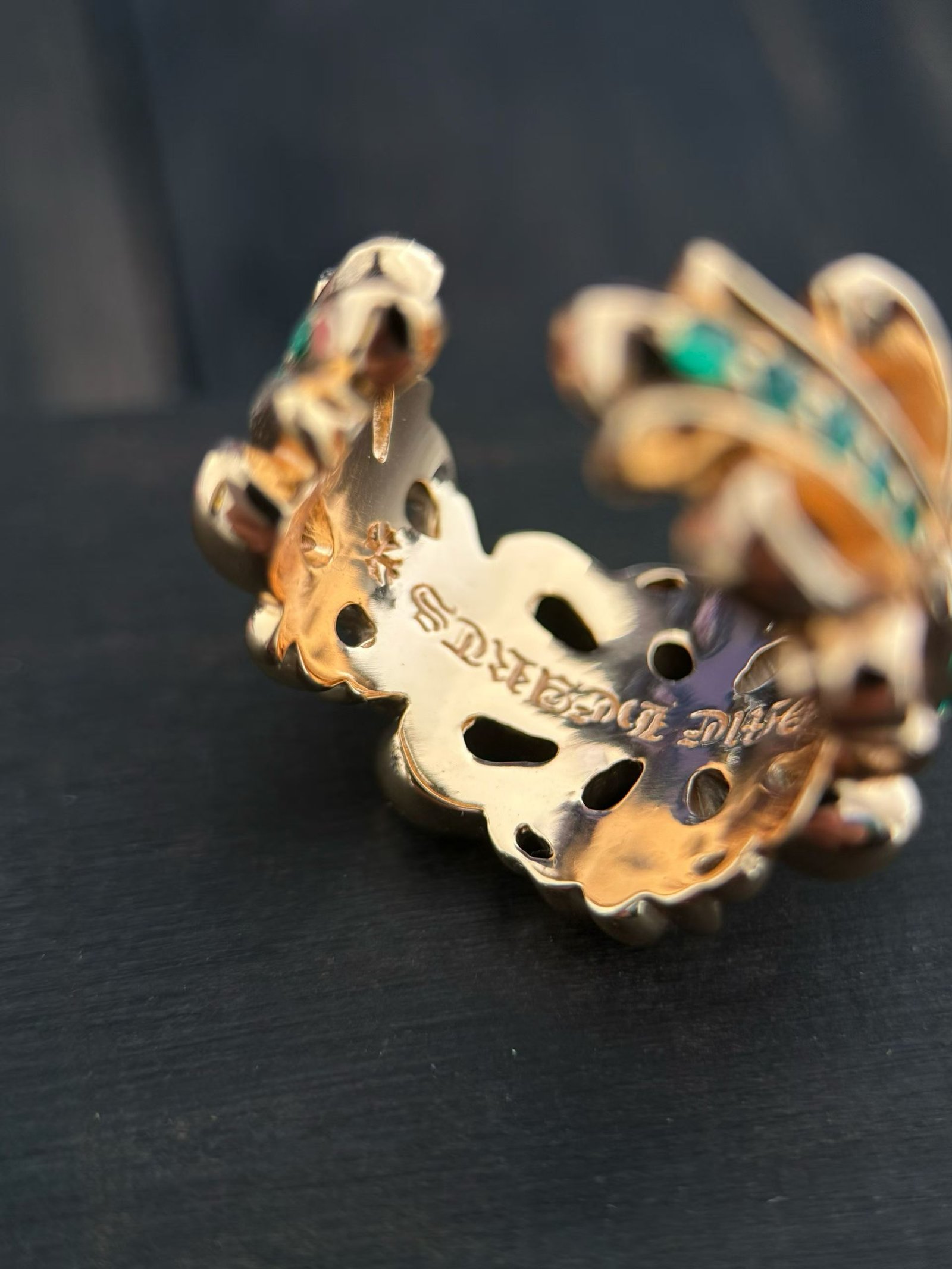 クロムハーツ 22K ゴールドメッキ エメラルド 開口クロスフラワー