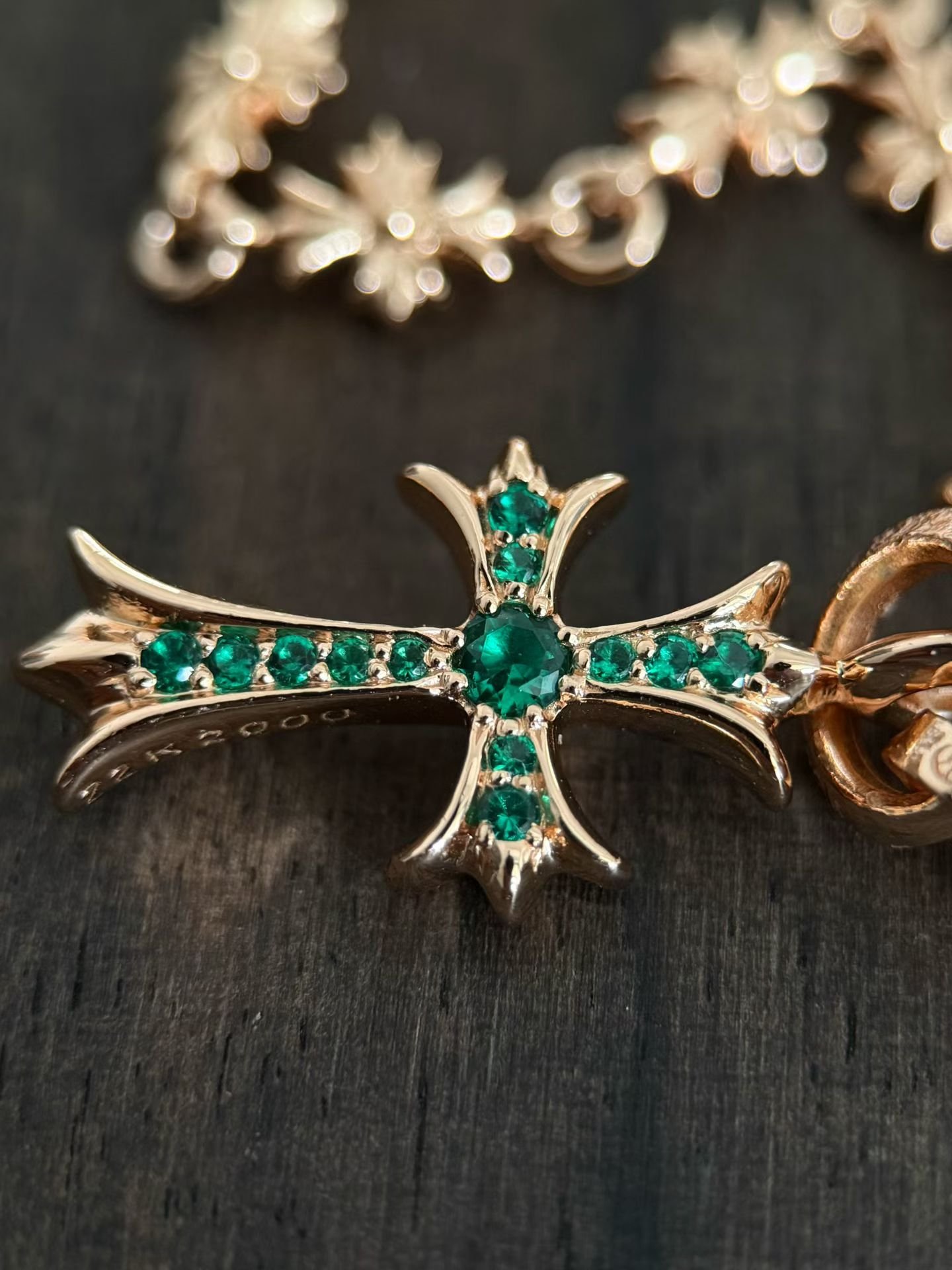 クロムハーツ 22K ゴールドメッキ グリーンダイヤ チョーカー