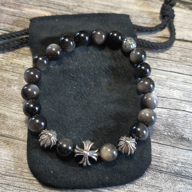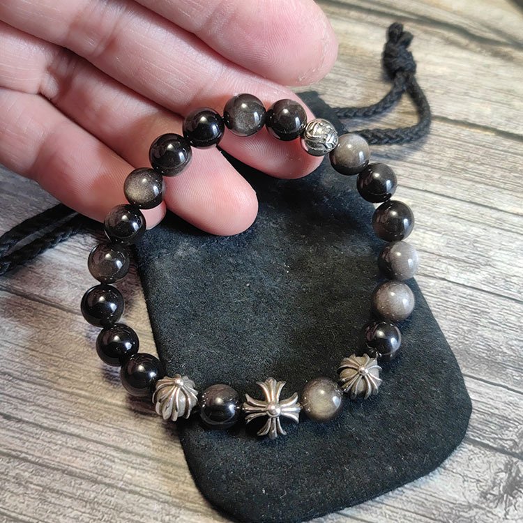 クロムハーツ 8mm 銀曜石 銀ビーズ ブレスレット パンクヒップホップ ストリートファッション パーソナライズド DIY