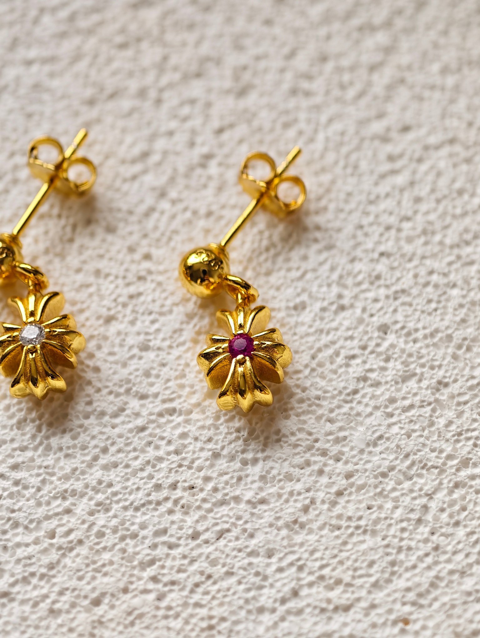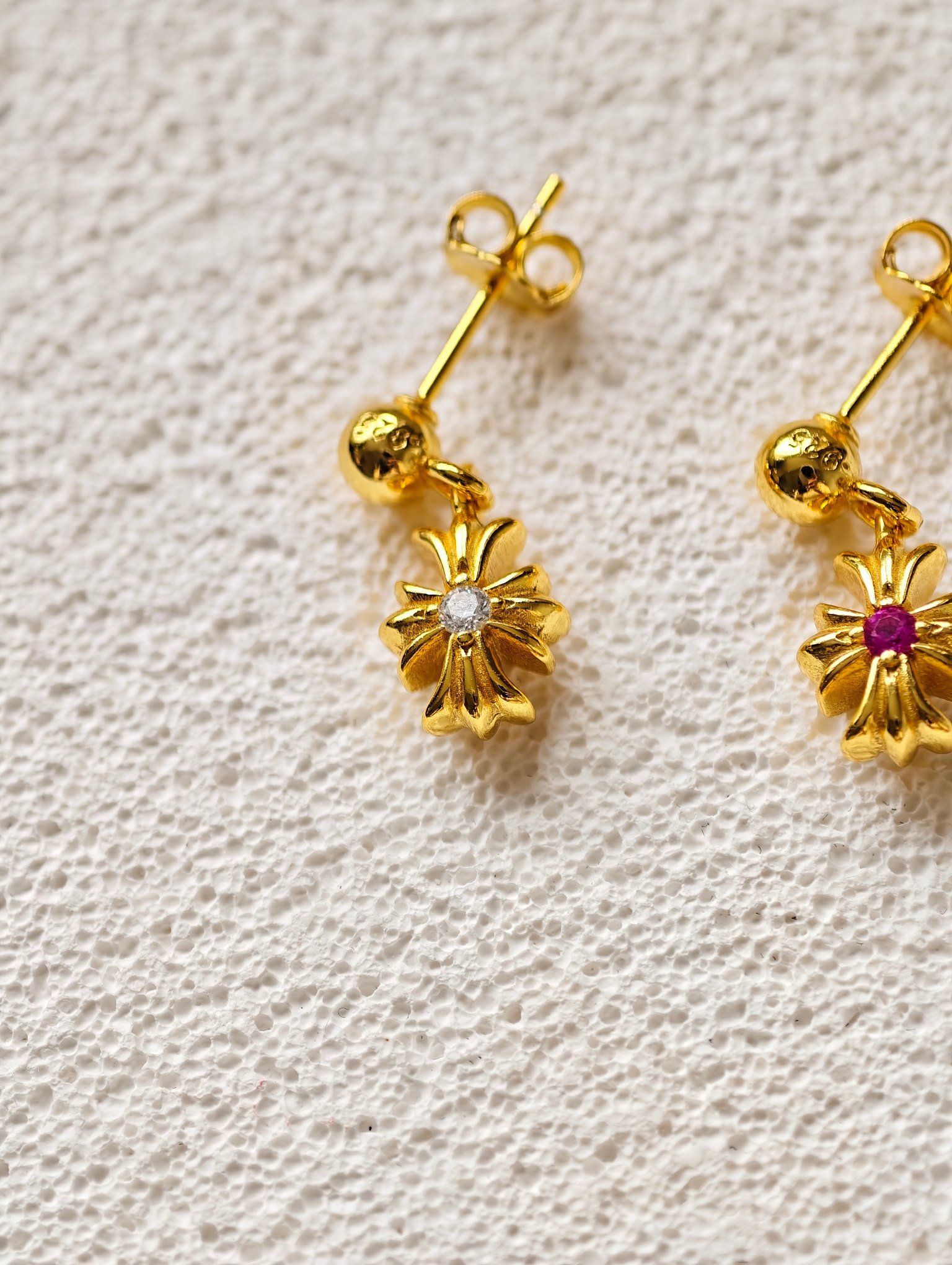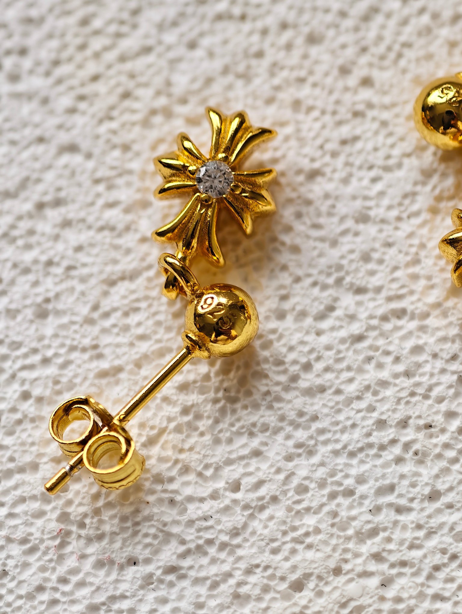 𝐂𝐡𝐫𝐨𝐦𝐞 𝐡𝐞𝐚𝐫𝐭𝐬 クロムハーツ メッキ ストーンセット シングルセクション クロスフラワー ピアス