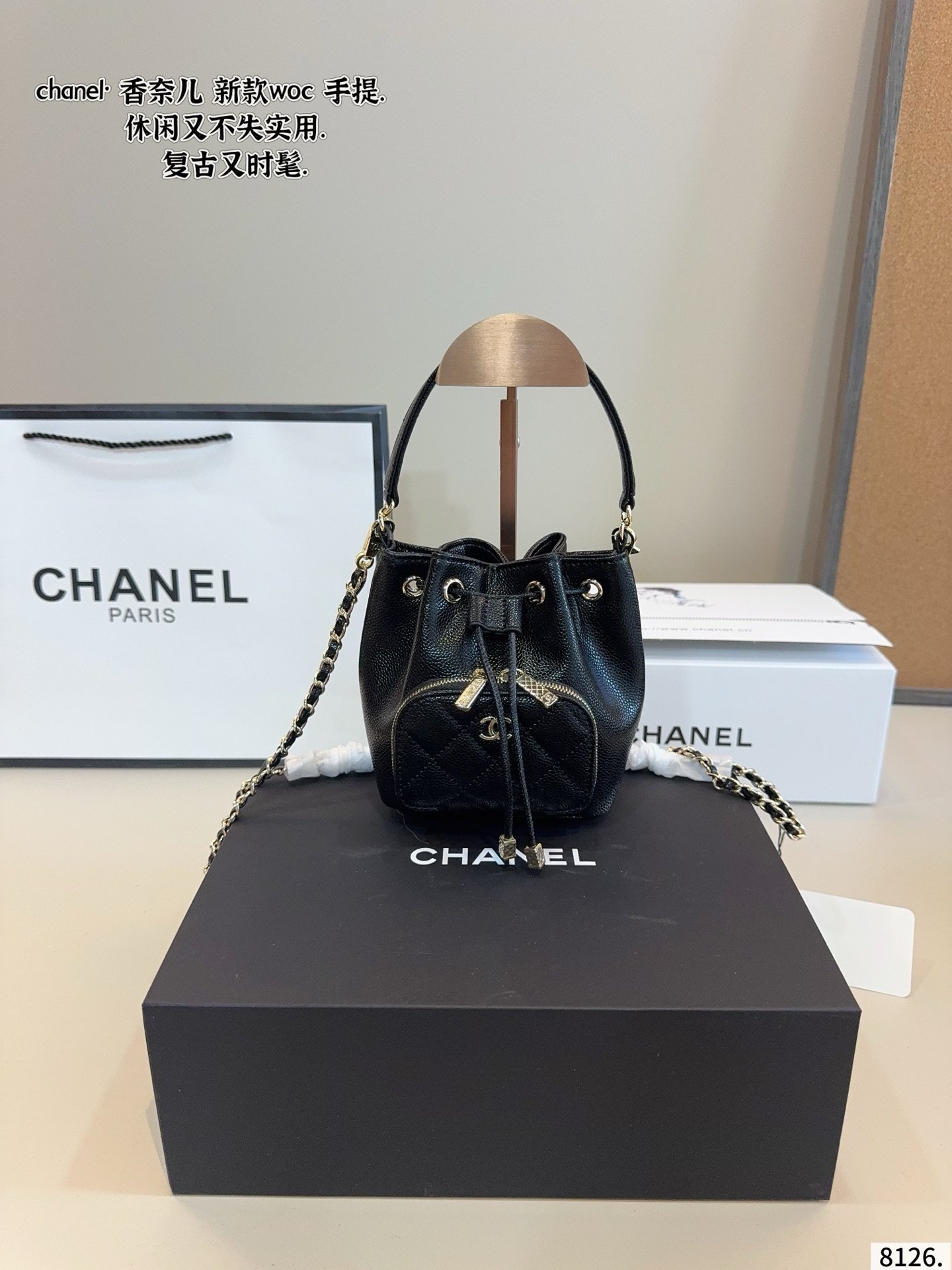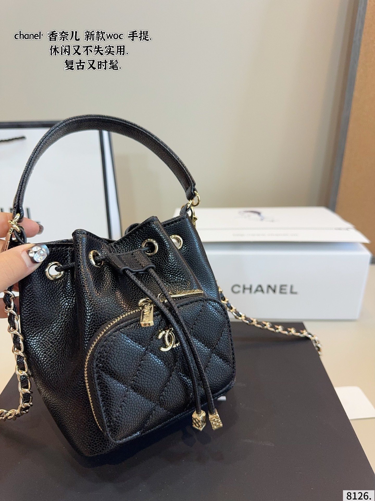 シャネルミニ バケットバッグ,サイズ:13×6×15cm(縦 × 幅 × 高さ)