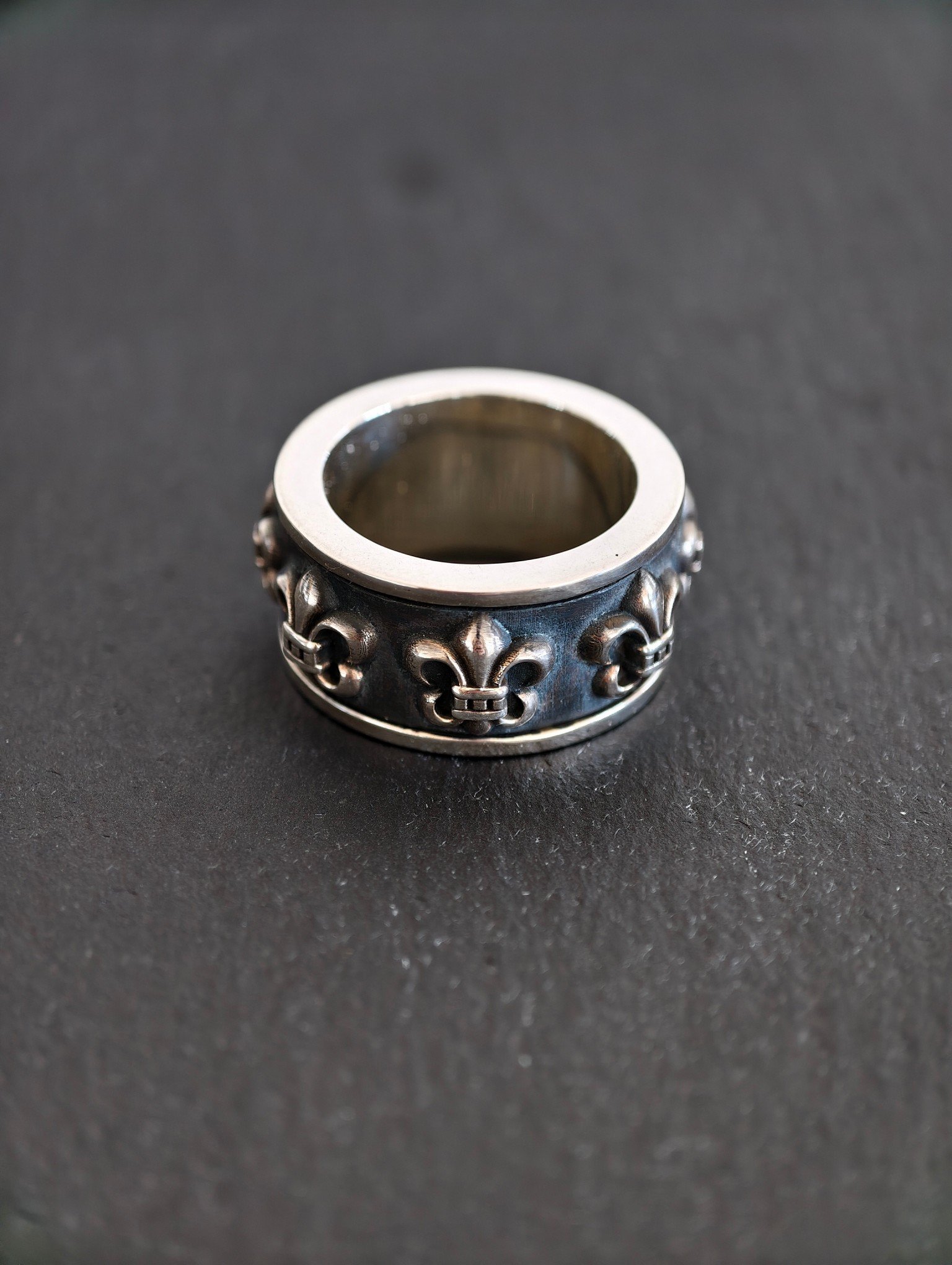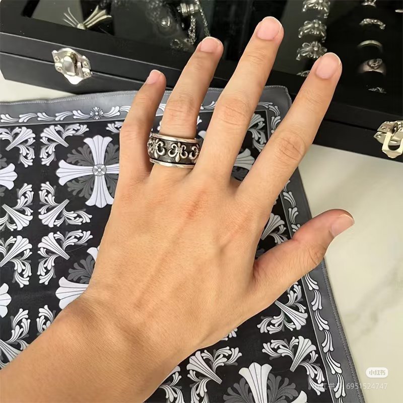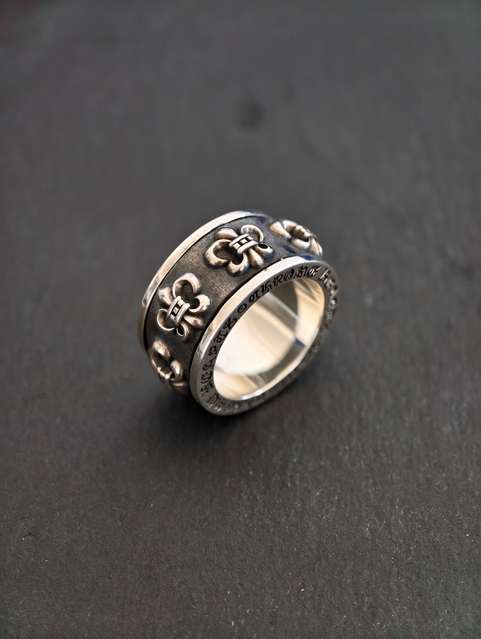 スカウトフラワー スピナーリング,純銀製、ヴィンテージアンティーク仕上げ、手彫り工芸、オリジナル完全再現、スカウトフラワーパターン、360℃回転可能、質感厚重、ファッションラグジュアリーアイテム。