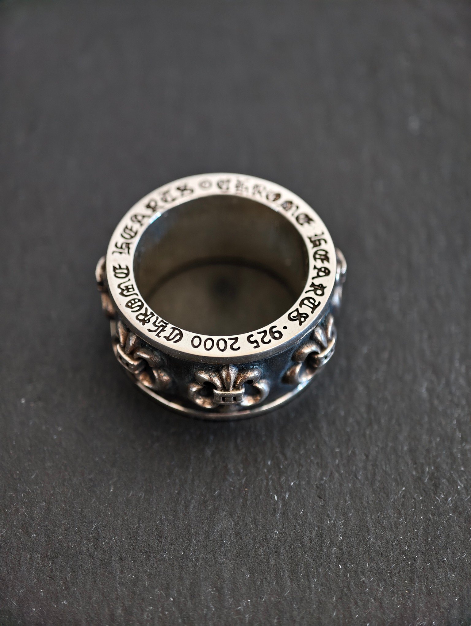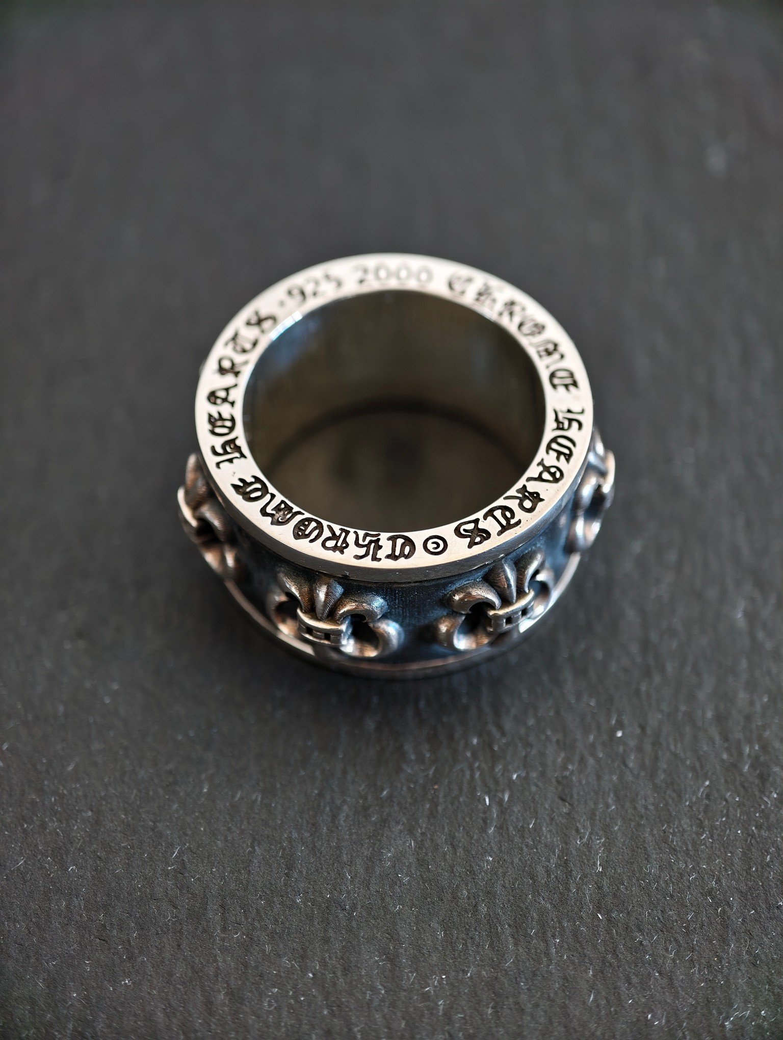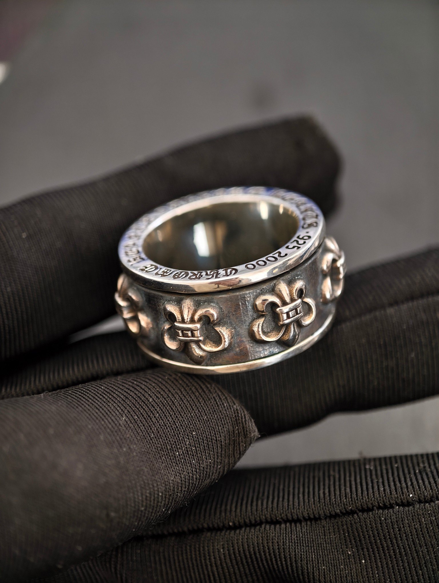 スカウトフラワー スピナーリング,純銀製、ヴィンテージアンティーク仕上げ、手彫り工芸、オリジナル完全再現、スカウトフラワーパターン、360℃回転可能、質感厚重、ファッションラグジュアリーアイテム。